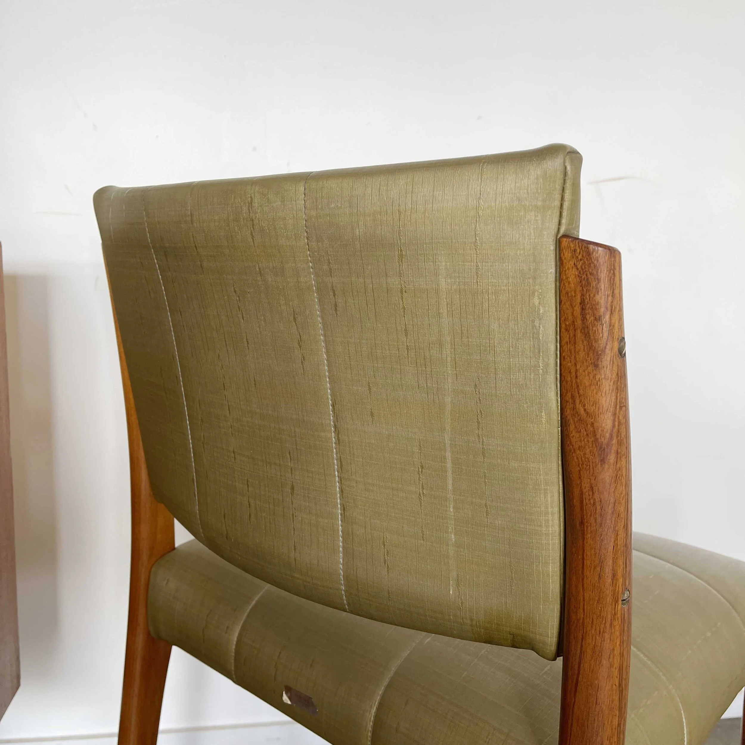 Blackwood timber frame with their original green vinyl upholstered seat and back.